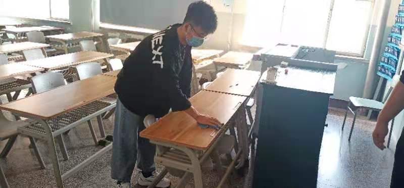 机电工程公司员工帮助老师打扫了办公室。团总支成员利用课余时间分组,按时间段对知行楼及工程办公楼的办公室进行了卫生清扫。