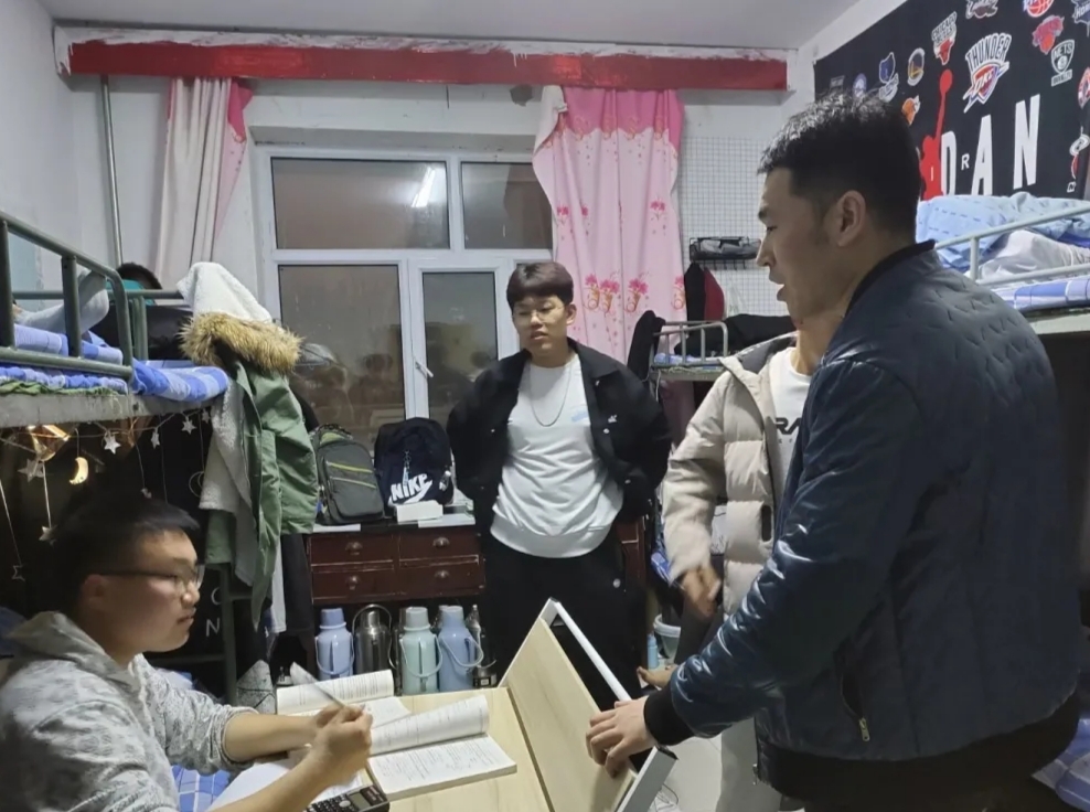 走访过程中,佟晟老师仔细询问同学们生活和学习状况。针对使用违禁电器、抽烟喝酒等宿舍安全隐患进行逐一排查。并叮嘱同学们要积极自觉维护宿舍安全与卫生,定期通风消毒,注意饮食和起居健康,营造健康向上的宿舍文化,注重预防诈骗的宣传。要养成良好的作息习惯,多参加户外体育锻炼,以积极饱满的状态投入到学习、工作和生活中。