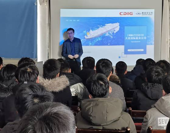 之后,中国大连国际经济技术合作集团有限公司的张经理和中国(辽宁)自由贸易试验区大连片区国际海员综合服务基地的刘主任对公司状况进行了详尽的宣讲和介绍。他们分别从企业文化、发展历程、员工岗位、待遇津贴、晋升渠道、生活娱乐保障等多方面进行了为期2个小时的宣讲,并表示非常欢迎同学们到公司工作、实习。