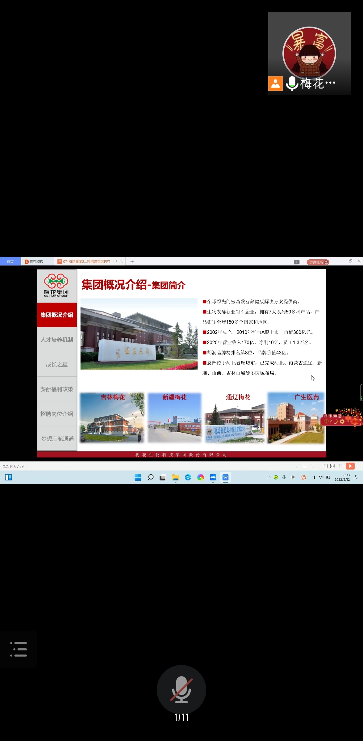 梅花集团从2002年生产味精起步,快速发展为当今世界上最大的味精生产企业之一,是国内最大的氨基酸生产企业,为全球生物发酵领域的重要成员。李经理从企业状况、企业文化、企业管理、工资待遇、员工晋升、企业福利等多方面进行了详尽的宣讲和介绍,并表示非常欢迎同学们到公司工作、实习。