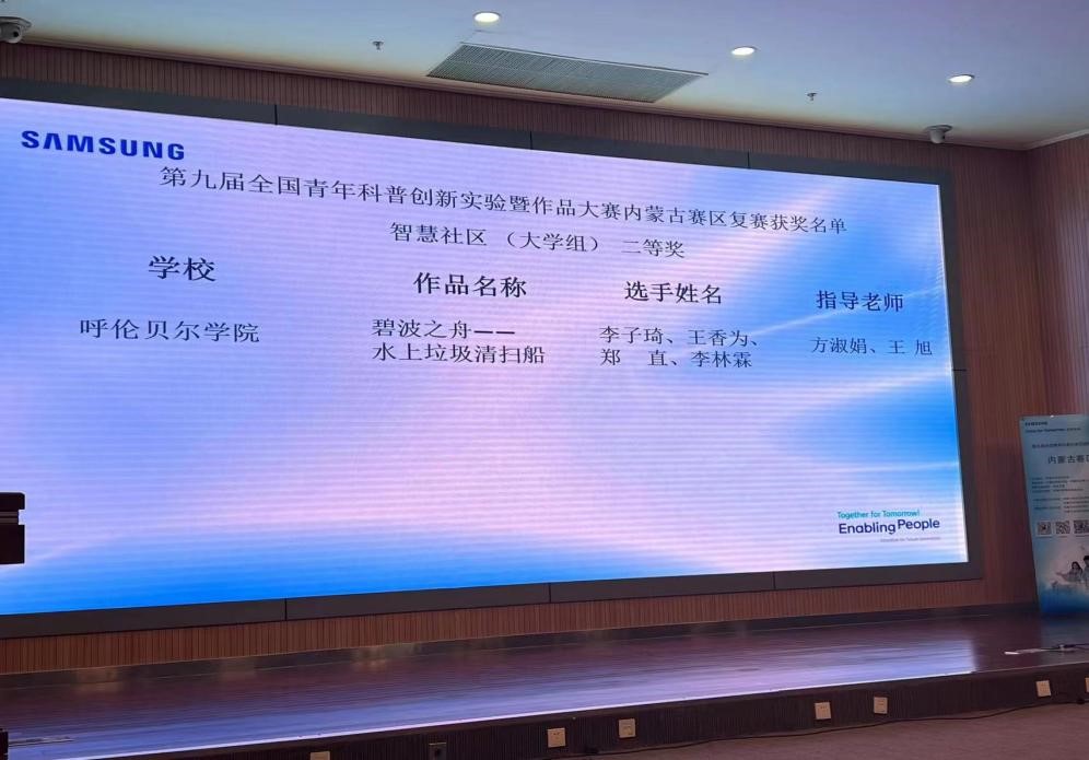 5月21日,第九届全国青年科普创新实验暨作品大赛内蒙古赛区复赛在呼和浩特市内蒙古科技馆举行。该项比赛由内蒙古自治区科协、自治区教育厅主办,共有2203组队伍,4592名选手报名参赛。经过初赛,共10件作品进入智慧社区(大学组)复赛。公司伟德国际1946教师方淑娟、王旭指导的参赛作品《碧波之洲---水上垃圾清扫船》突出重围,成功进入复赛,并荣获二等奖。