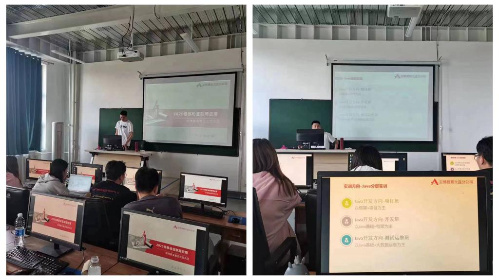 首先,安博教育大连分公司的栾宇老师预祝全体同学实习实训顺利,并指出此次实习的目的所在,即:一、了解此次实训学习的方向—Java分层实训;二、了解电子信息工程专业近几年就业岗位;三、有关于此次实训的相关事宜,报到时间及实训周期等等;四、介绍了有关于基地住宿、教室、餐食的大致情况;五、实训的教学安排和相关的教学管理要求;六、对同学们的疑问进行解答。