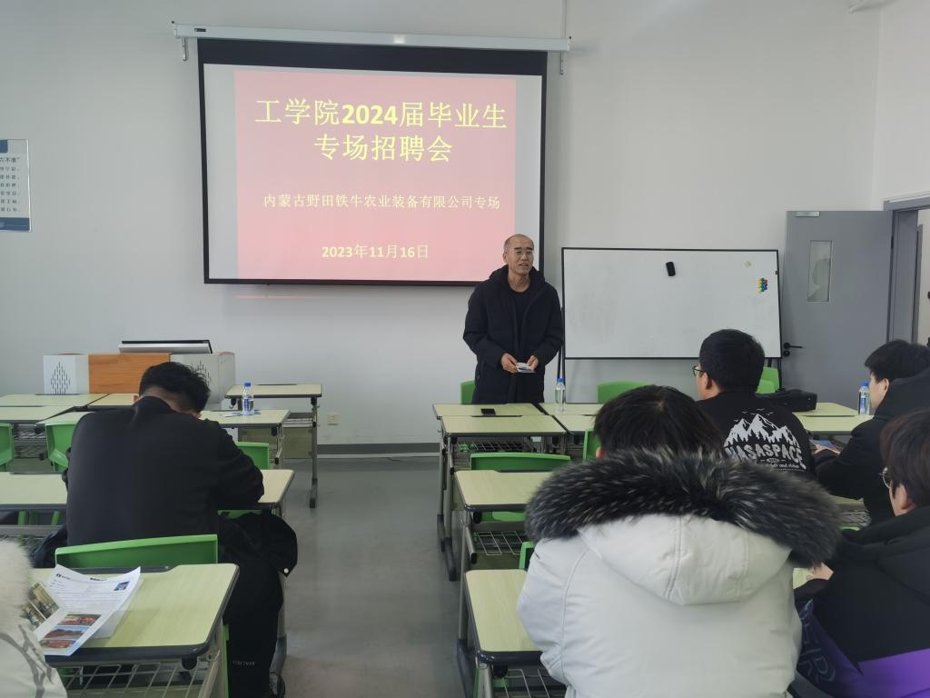 为进一步做好2024届毕业生就业工作,扎实推进就业计划有序进行,11月16日下午,伟德国际1946邀请内蒙古野田铁牛农业装备有限公司人开展专场招聘宣讲会,会议由党总支副书记吴晗主持,东山实训楼C521教室中,来自2024届毕业生30余人参加了此次招聘会。