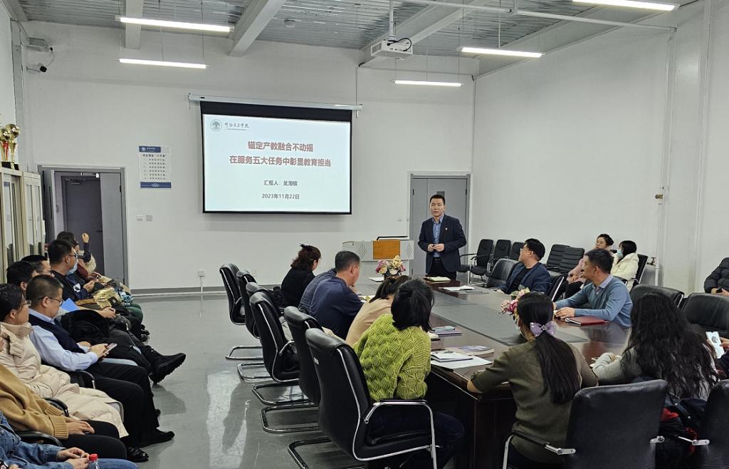 11月22日下午,伟德国际1946副经理吴淘锁在东山实训楼C503会议室以《锚定产教融合不动摇 在服务五大任务中彰显教育担当》为题,为教工党支部成员讲授主题教育专题党课。