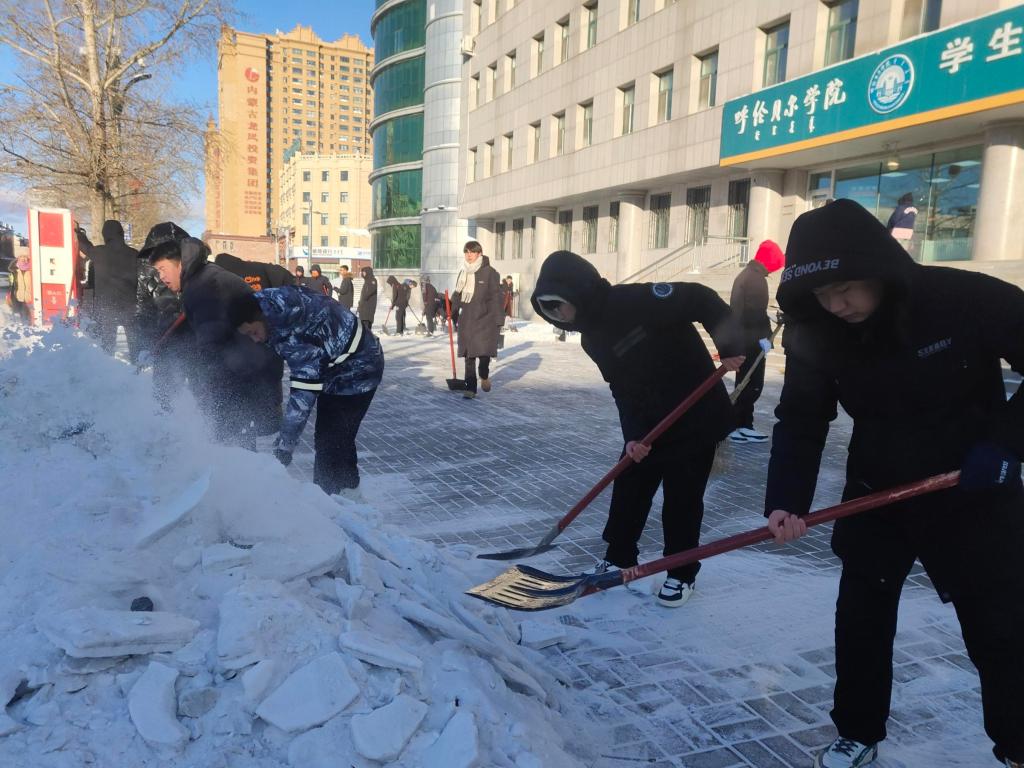 活动中,同学们在自己所负责的区域团结协作,大家一个个精神抖擞,有的用铁锨铲、有的用扫帚扫、有的用簸箕搓……清扫工具在同学们的手里变成了扫雪法宝,不停地飞舞着。虽然零下几度的低温,使除雪工作更加艰难,但也未能阻挡大家的热情,他们充分发挥不怕苦、不怕累的精神,互相帮助、互相配合,展现了伟德国际1946同学们敢于吃苦、勇于奉献的精神,体现了伟德国际1946同学们的责任心和使命感。同心协力、冬雪溃败,在热闹的劳动声中,在高效而充分的劳动中,街道路面再现、积雪被打扫得干干净净。