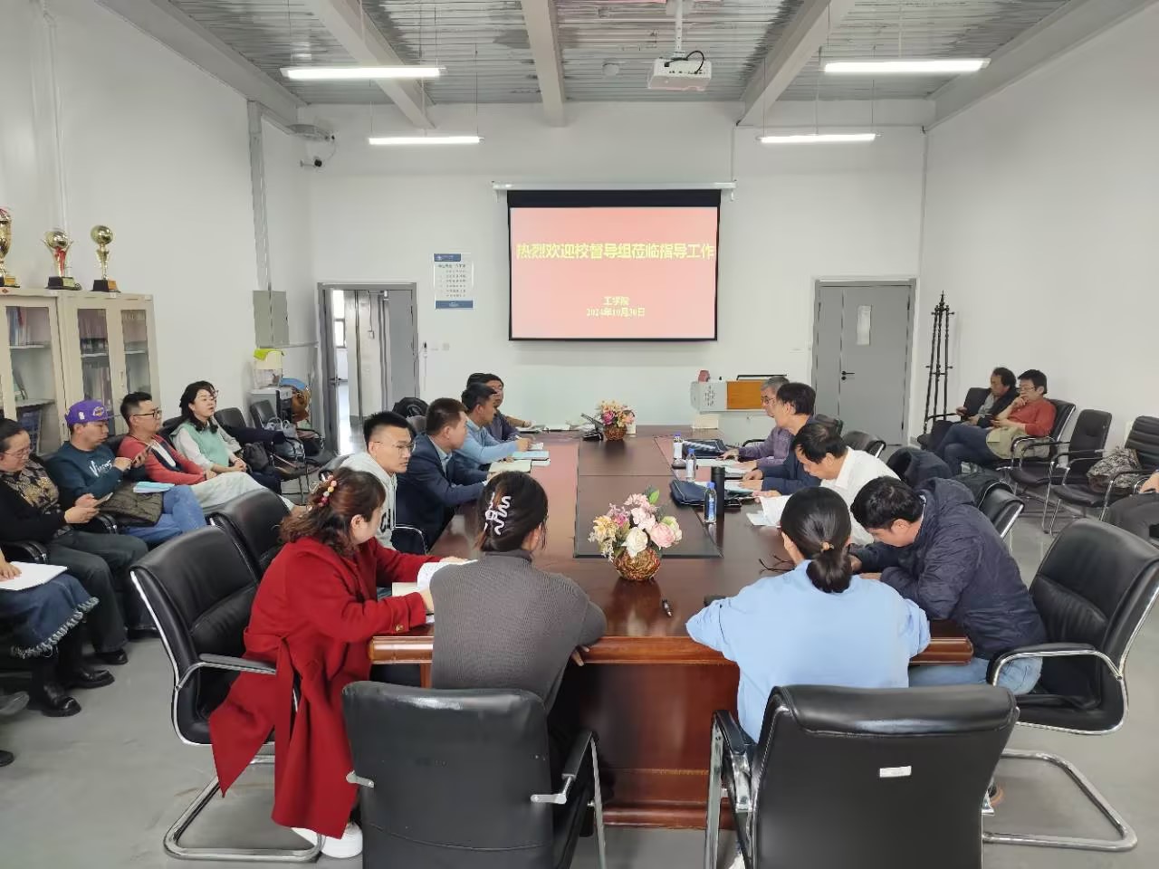 10月30日下午,校教学督导组成员王贵文、陈绍英、田文武三位专家莅临伟德国际1946开展教学督导工作,对公司公司产品、员工管理等方面进行检查、评估和指导,公司副经理吴淘锁、申玉宏及全体任课教师参会。