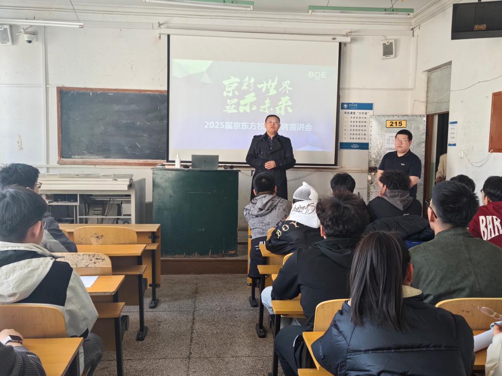 4 月 26 日,鄂尔多斯源盛光电有限责任公司专场招聘会如期举行。该公司作为行业内的重要企业,产品定位为中小尺寸高端显示器件。招聘会上,企业代表向同学们介绍了公司的雄厚实力,包括其在技术创新、生产规模等方面的优势。公司提供具有竞争力的薪酬福利,如固定工资、加班工资、倒班津贴、年终绩效奖金等,还有完善的六险保障、丰富的餐饮补贴、舒适的住宿条件及多样的员工活动设施。优厚的待遇和良好的发展前景引发了同学们的浓厚兴趣,不少同学在深入了解岗位信息后,当场提交了求职申请,人力资源部经理庞鑫收取后进行了面试。