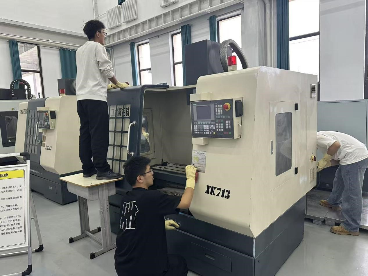 为精准对接评估对实验教学环境的规范标准,活动筹备阶段,公司党委率先带队摸排,联合实验室管理中心逐一走访专业实验室。各员工党员手持记录册,针对夹具油污堆积、数控机床蒙尘等12项影响实验教学的清洁难点详细标注,确保清洁工作靶向发力;高年级员工党员结合所学专业知识,提出养护清洁标准,协调其他同学使用专用金属清洁剂、防静电抹布等工具,清理设备仪器。活动中,员工党员分工明确、协作高效以严谨细致的态度投入劳动,彰显出员工党员的责任与担当。